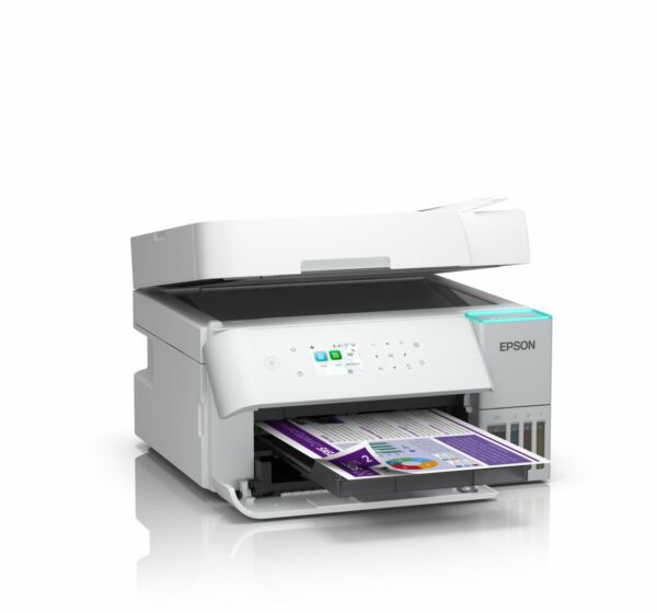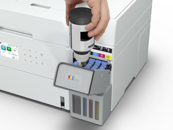 Multifunctional inkjet color Epson EcoTank CISS L6376, culoare alb, dimensiune A4 (Printare,Copiere, Scanare), printare borderless, viteza 35ppm alb-negru, 23ppm color, rezolutie 4800×1200 dpi, alimentare hartie 250 coli,ADF 30 coli, duplex automat ,scanner CIS rezolutie 1200×2400, Interfata: USB, Retea, WI-FI, LCD 6.1cm, Consumabile: (black 7.5k pagini, color 6k pagini), C13T03V64A, C13T03V14A, C13T03V24A, C13T03V34A, C13T03V44A.